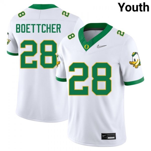 #28 White Oregon Ducks Youth Bryce Boettcher Premium Stitched College Football Jersey 3olDkK78