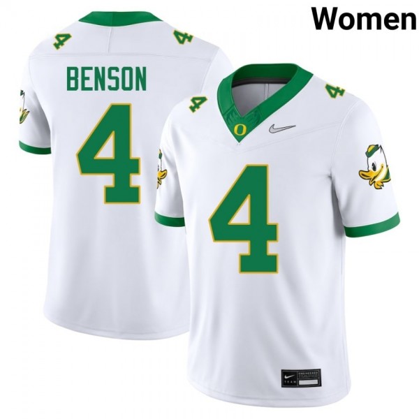 Oregon Ducks pride never looked better, rock a #4 White Ducks Women Malik Benson Premium Stitched College Football Jersey 76Lm8425 from our official online store! Premium, team-approved, and designed for true fans, this apparel is your ticket to standout game day style. Don't delay, grab yours now and join the Ducks faithful!