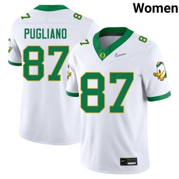 A.J. Pugliano White #87 Ducks Women High-Quality Stitched Football College Jersey G3314822
